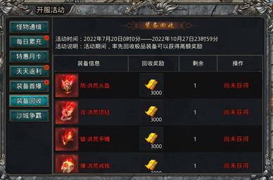 名额有限,快速升级与提升攻击力,尽早打怪获得稀有装备与回收装备获得奖励!