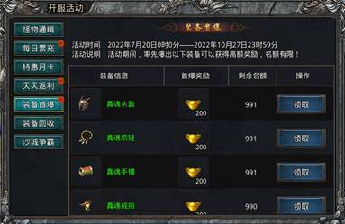 名额有限,快速升级与提升攻击力,尽早打怪获得稀有装备与回收装备获得奖励!